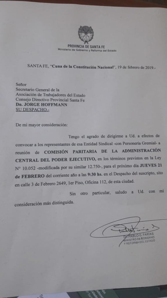 En horas del mediodía el gobierno provincial de Santa Fe relevó el nuevo llamado a los gremios centrales para continuar la negociación paritaria.