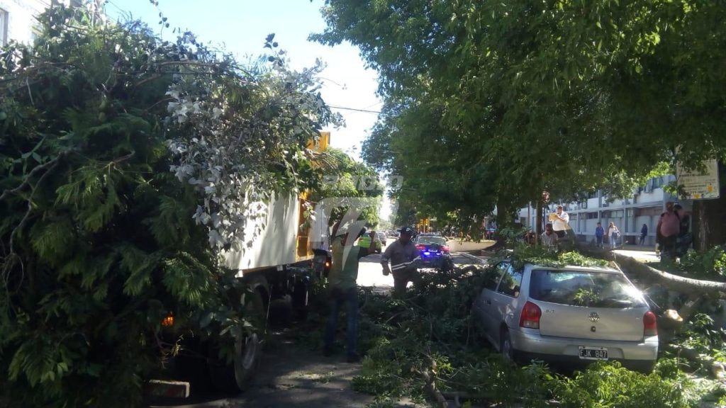 Las ramas de un árbol ubicado sobre la vereda izquierda de Belgrano impactó de lleno contra el automóvil estacionado debajo de él generando destrozos en su parabrisas.
