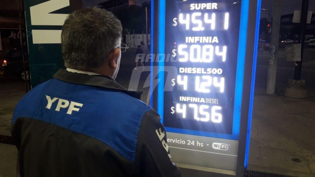 La pizarra de YPF marca la suba de 3,8% para las naftas. La Súper ahora cuesta $45,41 y la Infinia $50,84, los diesel quedaron en $41,24 para el común y el diesel premium se colocó en $47,56.