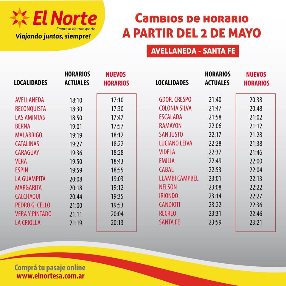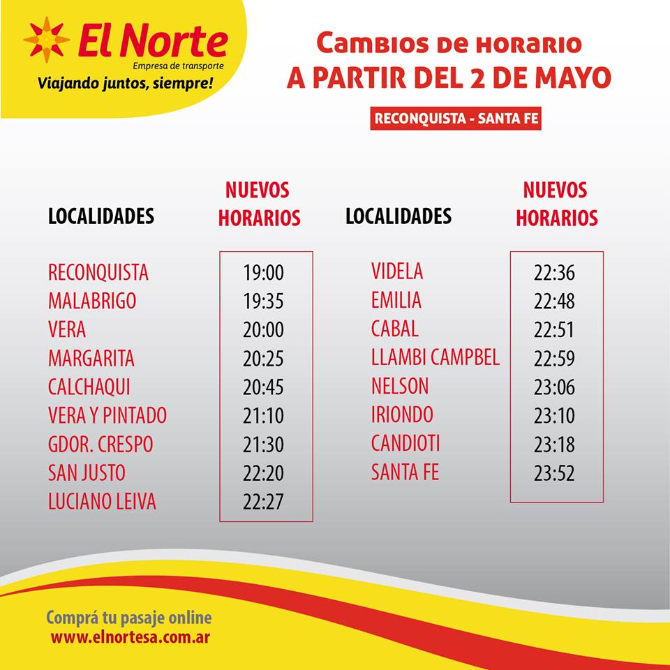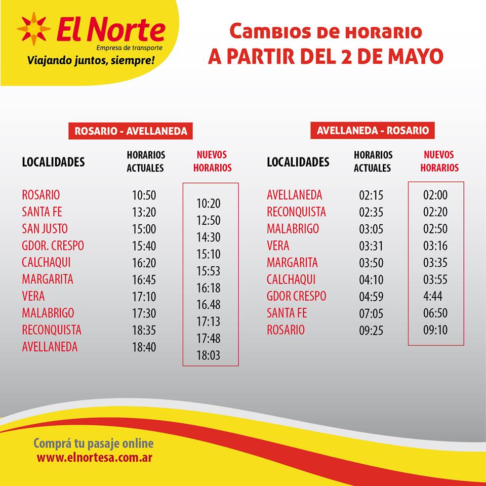La empresa de colectivos de media distancia El Norte, comunicó este viernes los nuevos horarios para todos sus servicios.