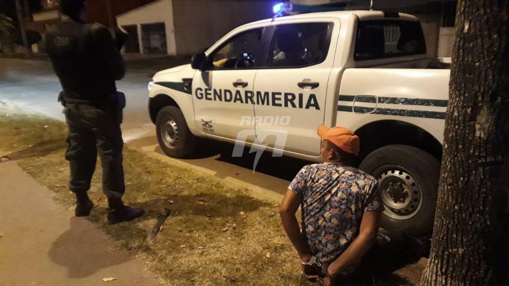 Los gendarmes que vieron la situación lo persiguieron y a pocos metros lograron aprehenderlo .Al agresor le secuestraron un machete, dos billeteras y un celular. Quedó detenido.