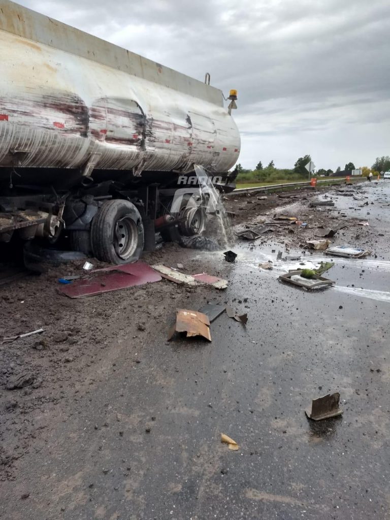 Del fuerte impacto participaron dos camiones sisternas. Uno de ellos transportaba combustible y el otro llevaba leche. Producto del choque frontal hubo una victima fatal.