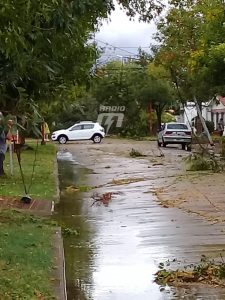 La mañana del lunes estuvo signada por una tormenta con abundante caída de agua y granizo. Sumado a las precipitaciones, la ciudad soportó fuertes ráfagas de viento.