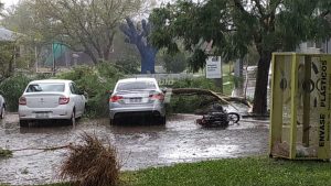 La mañana del lunes estuvo signada por una tormenta con abundante caída de agua y granizo. Sumado a las precipitaciones, la ciudad soportó fuertes ráfagas de viento.