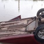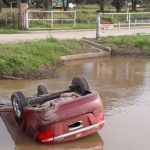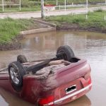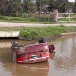 Automóvil volcó en el canal con agua frente a la pista de aviones de Villa Minetti