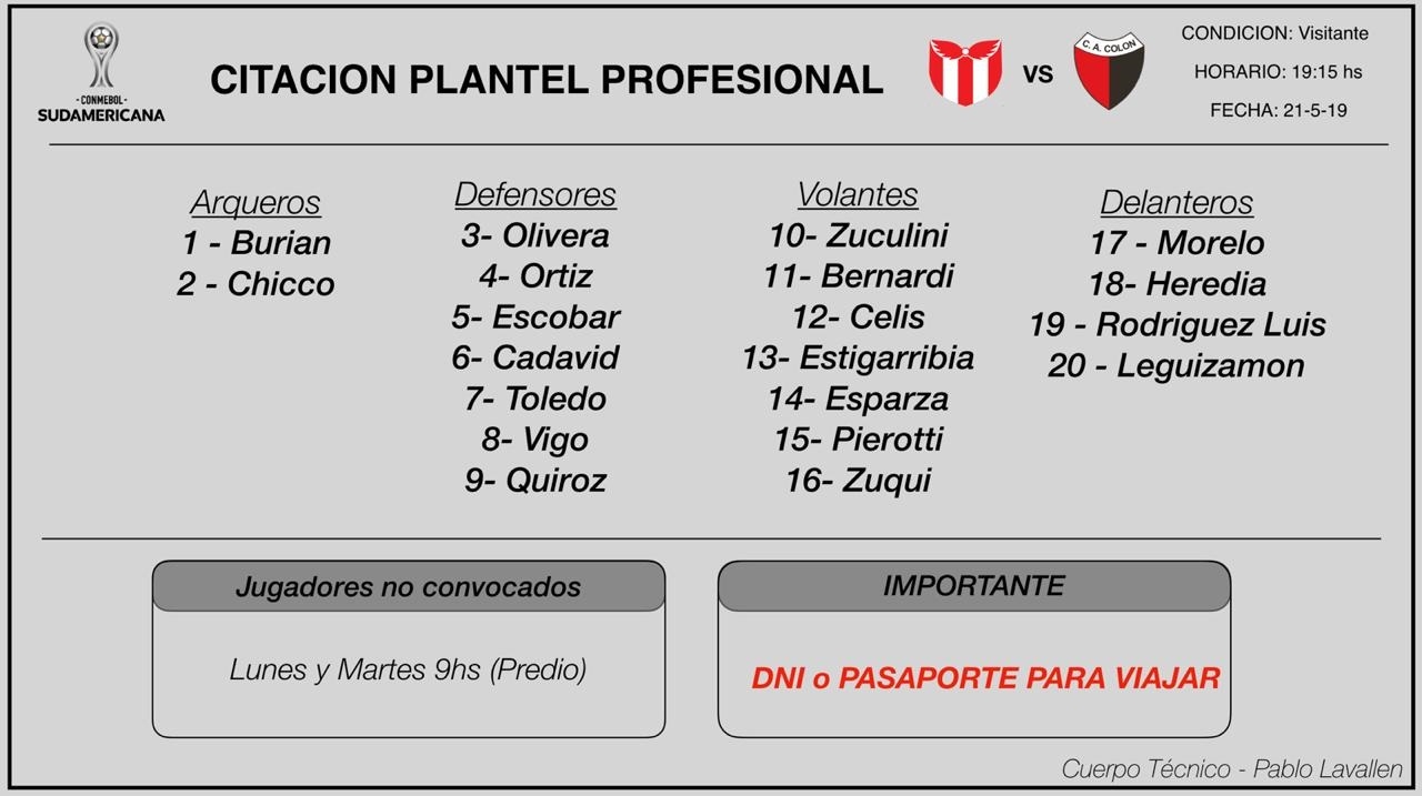 Por problemas y lesiones físicas, Matías Fritzler y Damián Schmidt quedaron fuera del encuentro internacional del Sabalero. La lista de convocados está conformada por los siguientes jugadores: