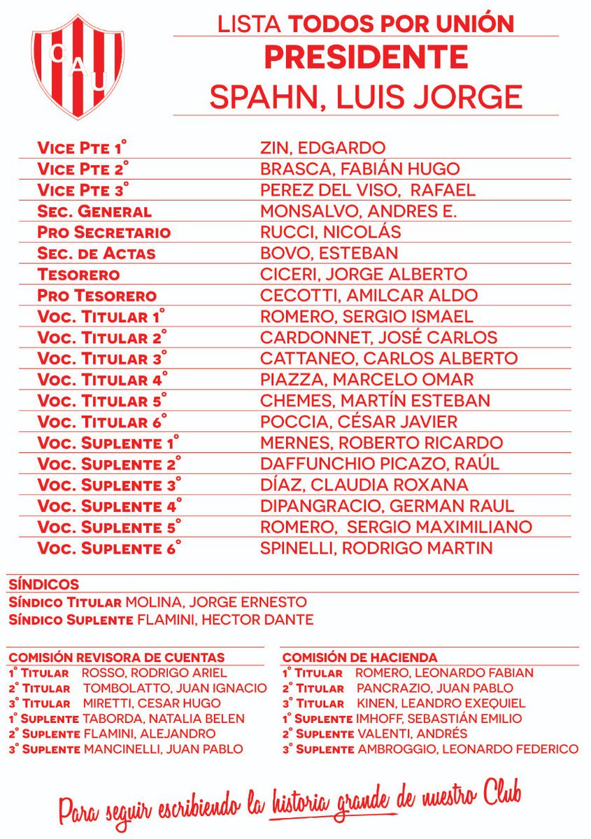 Entre sus integrantes, la figura más destacada es la de Jorge Molina, actual titular de UPCN, y candidato a ser el Sindico Titular de la institución rojiblanca. Hacía tiempo que no se lo veía interesado al representante gremialista en integrar la vida institucional de Unión. La causa era que ya no tendría relación con el actual presidente rojiblanco. Pero al parecer el vinculo se reconstruyó con esta nueva propuesta.