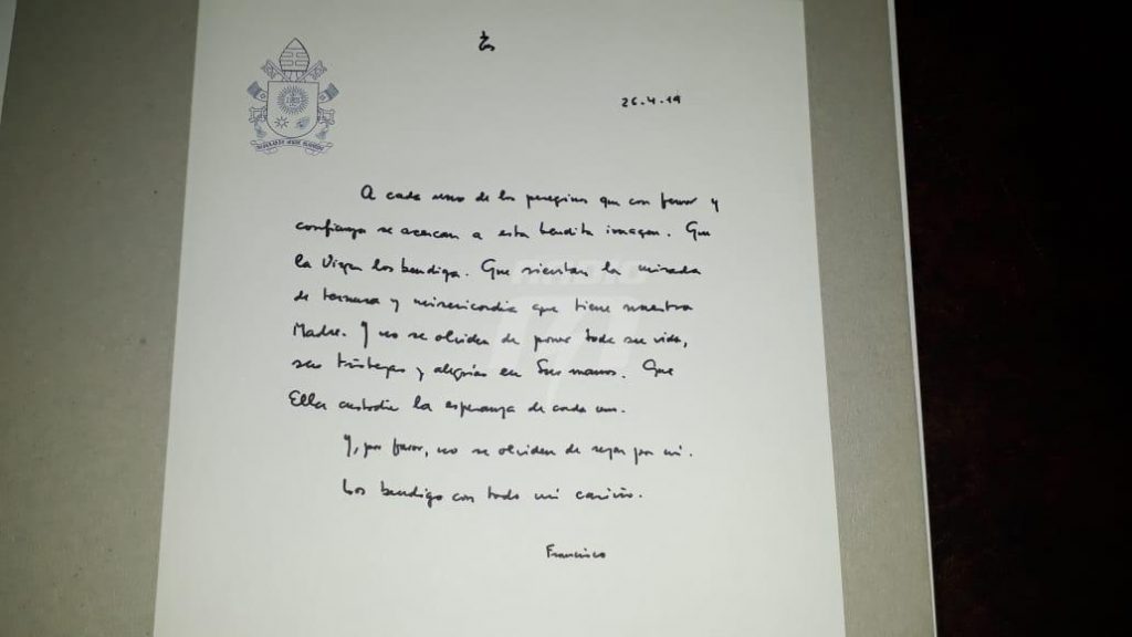 Posteriormente, le pide al párroco que lo tenga en sus oraciones: “Por favor, no se olvide de rezar por mí. Que Jesús lo bendiga y la Virgen Santa lo Cuide. Fraternalmente, Francisco”, finaliza el mensaje.