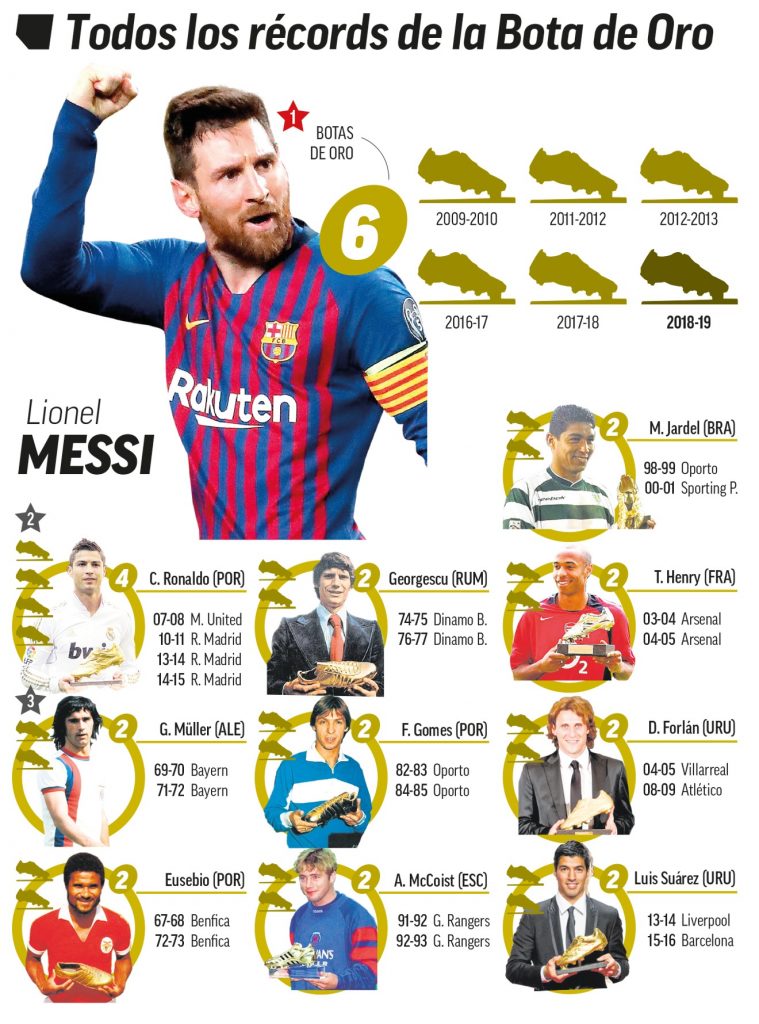 Lionel Messi sigue haciendo historia en el fútbol. La Pulga conquistó su sexta Bota de Oro, el premio que recibe el jugador que más goles convierte en ligas europeas. De esta manera se convierte en el primero en ganarlo dicha cantidad de veces.