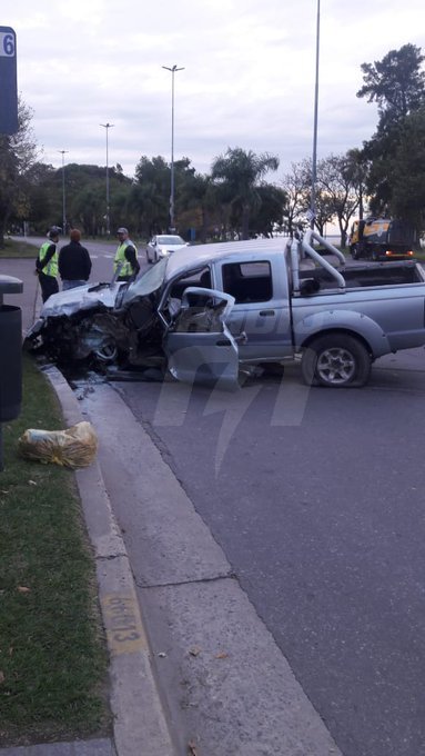 Por el fuerte impacto, la camioneta cruzó de carril y terminó chocando con el cordón de la mano contraria.