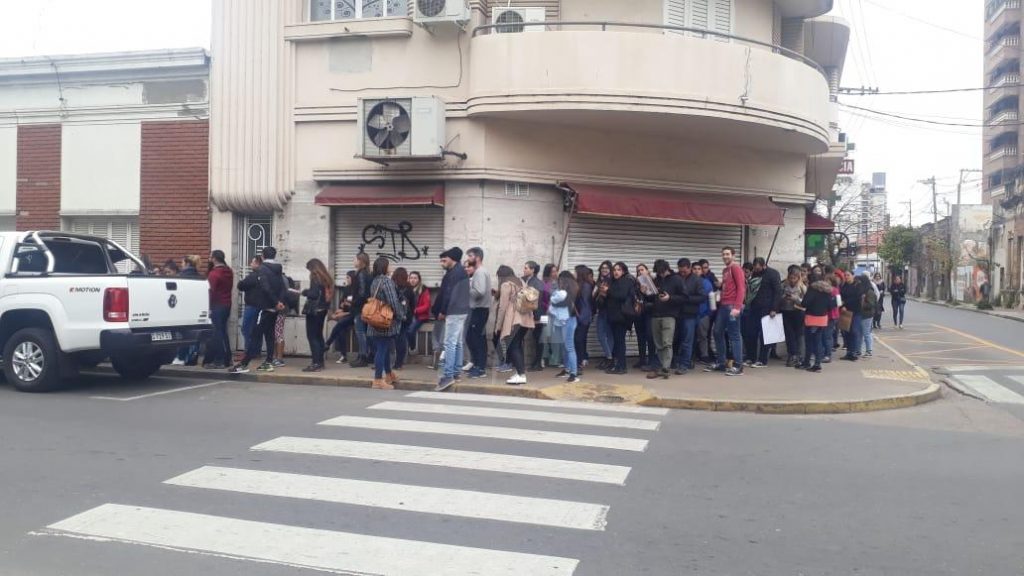 En la tarde de este viernes, se formó una larga fila de jóvenes postulantes en el marco de la convocatoria realizada por la Municipalidad de Santa Fe para cubrir puestos laborales en diferentes áreas. La cola comenzaba a mitad de cuadra de 1º de Mayo al 2100 y llegaba hasta las oficinas del Tribunal de Faltas del municipio.