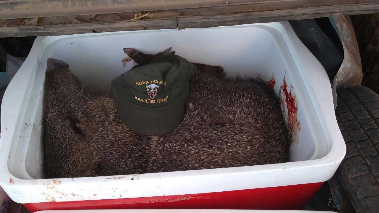 Y el otro caso fue el martes, también a la altura del kilómetro 145 de ruta 98, donde Los Pumas secuestraron un chancho pecarí sin vida.