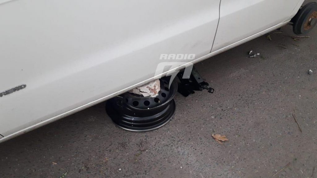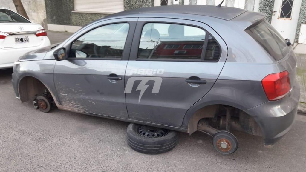 Cuando se levantó y salió a la vereda vio que en su auto faltaba rueda delantera y trasera del lado izquierdo. La particularidad de este caso fue que levantaron el auto con el cricket hidráulico y lo apoyaron sobre una llanta.