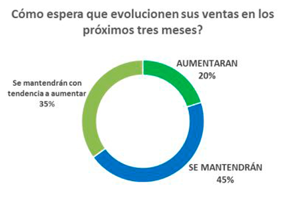 En cuanto a las proyecciones para los próximos meses el 20% de los comerciantes cree que aumentarán las ventas, un 45% cree que se mantendrán y un 35% estima que se mantendrán pero con leve tendencia a la mejora. El dato «llamativo» es que en las respuestas no hay alusiones a una baja de las ventas en el corto plazo.