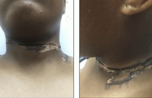 Rápidamente partió al hospital para que la trataran ya que el dolor era severo. Allí le diagnosticaron una “quemadura parcial de segundo grado”. Los especialistas creen que la descarga se dio al entrar en contacto con un collar en cadena que tenía la mujer puesto y que le lograron quitar.