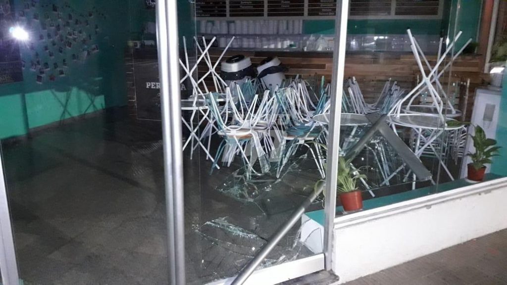 Una vez allí rompieron una hoja de la puerta de vidrio templado que quedó destruida en el interior del local. Los responsables de la firma constataron que no se llevaron nada.