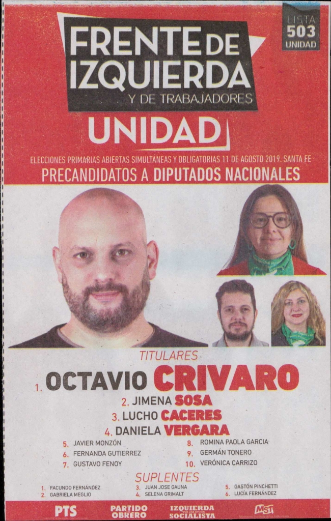 Alianza Frente de Izquierda y de Trabajadores Unidad: Octavio Crivaro