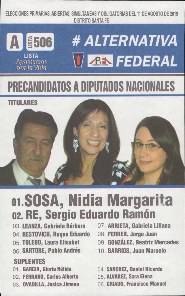 Alianza Alternativa Federal: encabezada por Nidia Sosa.
