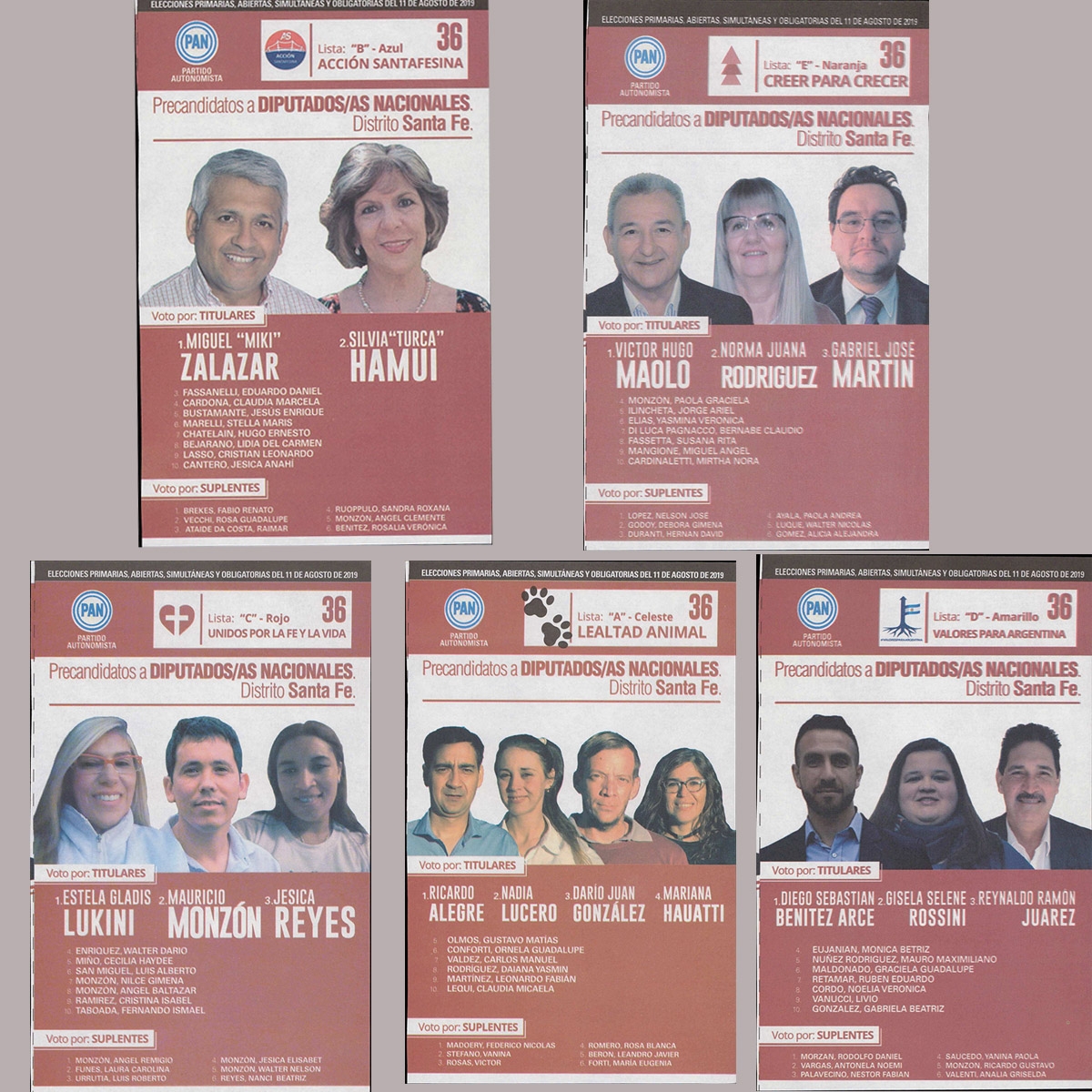 Partido Autonomista Santafesino: con cinco listas encabezadas por Miguel Zalazar, Víctor Maolo, Ricardo Alegre, Estela Lukini y Diego Benítez Arce.
