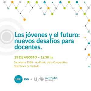 – La tercera es un taller denominado “Los jóvenes y el futuro: nuevos desafíos para los docentes”. El viernes 23, de 12:30 a 14:00 Hs., en el Auditorio de la Cooperativa Telefónica de Tostado. (Sarmiento 1368, Tostado).