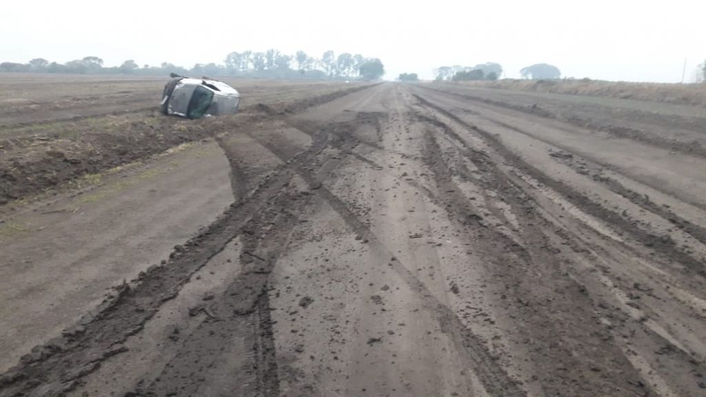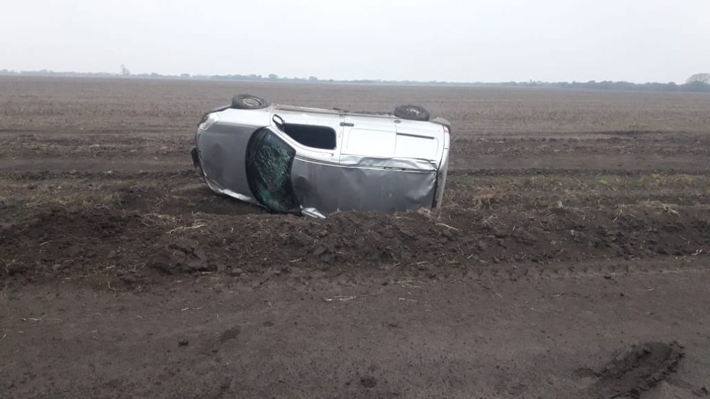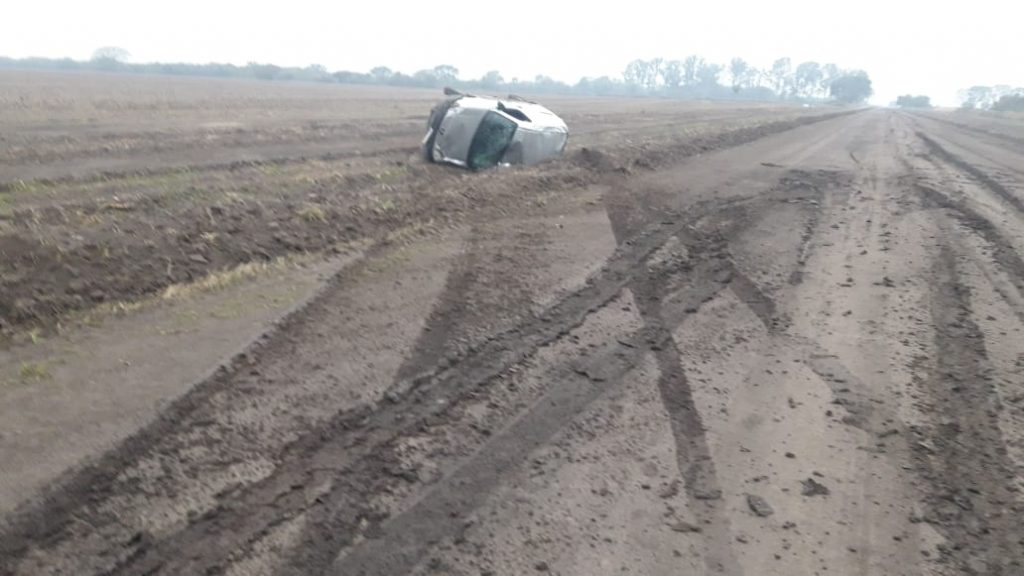 Un automóvil Peugeot Partner volcó tras haber perdido el control. El principal motivo habría sido por transitar en caminos de barros. Esto se debe a las intensas lluvias recientes que padeció la zona.