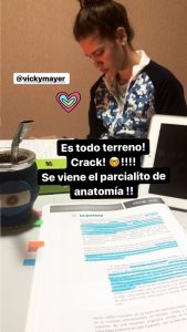 Finalmente, habló sobre la imagen que se difundió en redes sociales, de ella estudiando en el hotel luego de un partido dijo que «Estoy estudiando nutrición a distancia, estoy en mi primer año recién y la foto se difundió porque estaba repasando para el parcial».
