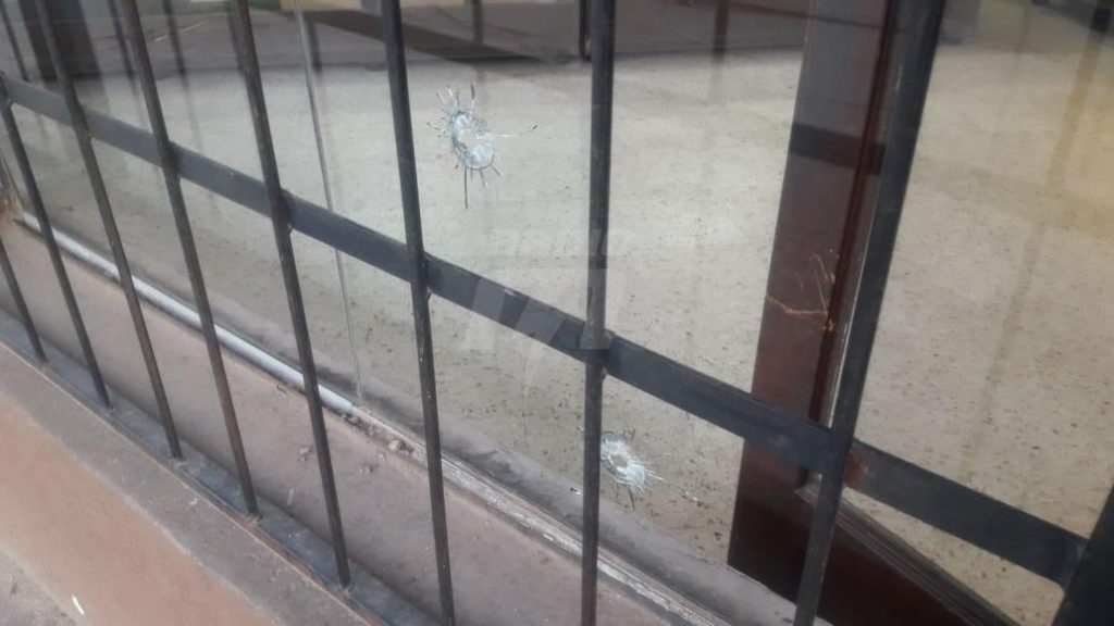 Dos impacto de bala en la vidriera de la panadería