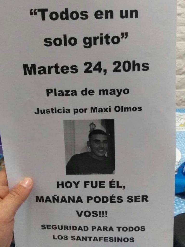 Bajo el lema “Todos en un solo grito”, familiares y amigos de Maximiliano Olmos marcharán este martes a plaza de Mayo para reclamar justicia por el asalto y homicidio del joven ocurrido el pasado jueves en horas de la noche en barrio Mariano Comas.