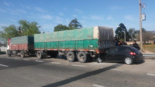 Este miércoles por la mañana se produjo un accidente en la ruta 168, donde un Peugeot negro se incrustó debajo de un camión.