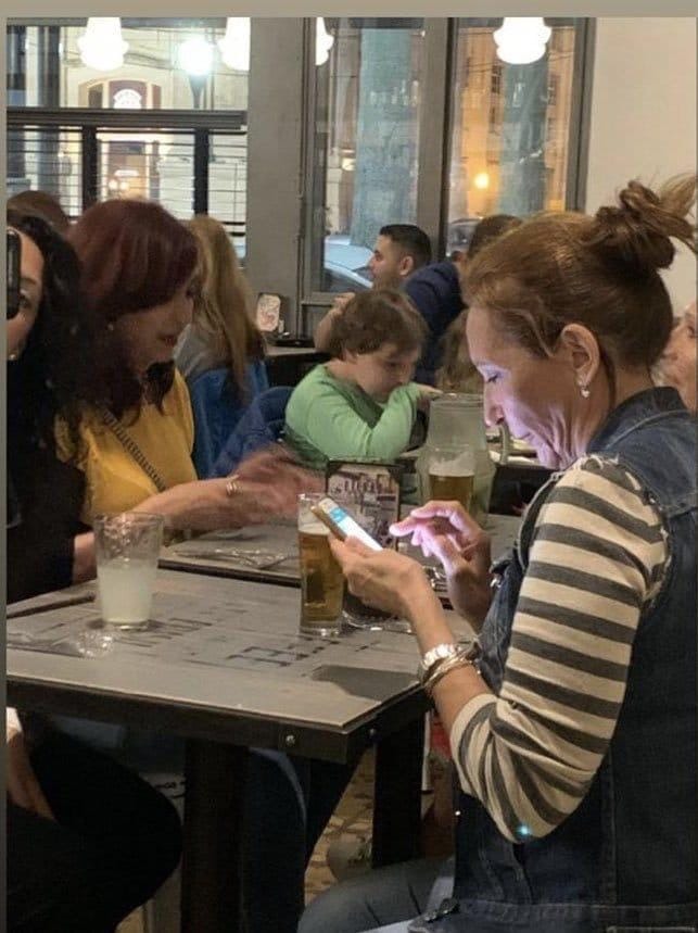 Sin embargo, solo restaba la presencia de uno de los candidatos a vicepresidente: Cristina Fernández de Kirchner. Hasta que en un momento, la ciudad de Santa Fe se conmocionó al enterarse de su presencia en la localidad sede del evento presidencial. A partir de una fotografía que comenzó a viralizarse, se conoció que la expresidenta se encontraba en un famoso bar santafesino, ubicado en la esquina de Bulevar y Dorrego, a tan solo 15 cuadras de la UNL. Allí se la ve merendando junto a un grupo de amigas.