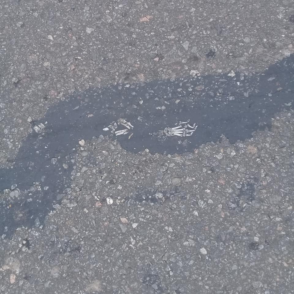 Automáticamente, sus seguidores comentaron con supuestos y la mayoría se acercaba a la aterradora conclusión de que «eso» se parece a una mano humana que, de serlo, había quedado en el asfalto derramado para arreglar la ruta.