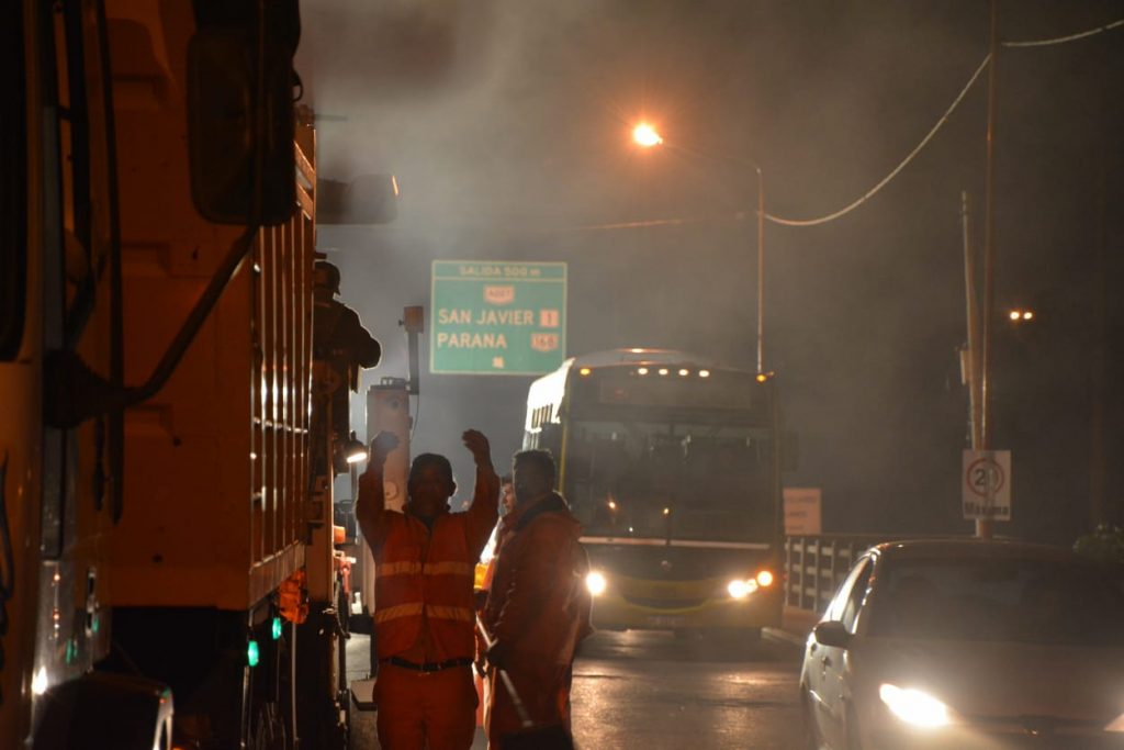 Ya iniciaron las primeras tareas de repavimentación del Puente Santa Fe-Santo Tomé.