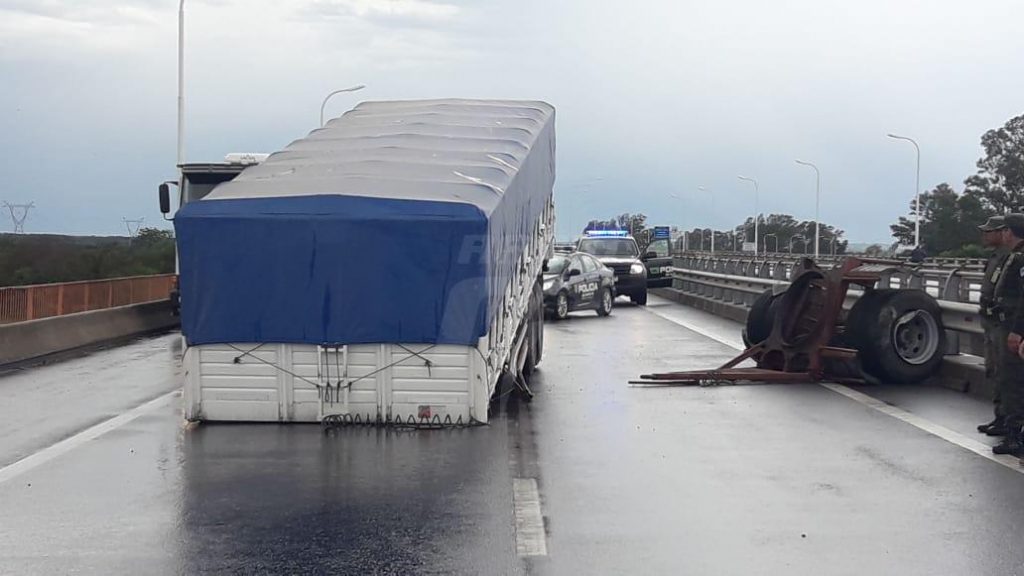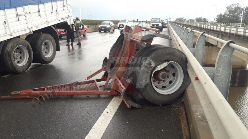 Un camión quedó varado luego de perder su acoplado en el puente Colastiné