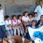 El martes de esta semana, los integrantes de dicha agrupación realizaron el recorrido por la zona rural para otorgar un pan dulce a cada alumno que asiste a las instituciones educativas. Entregaron un total de 83 unidades.