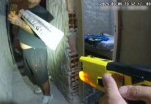 Después, se refieren a un policía que observa el material secuestrado: «No te vas a robar nada vos, rastrero».