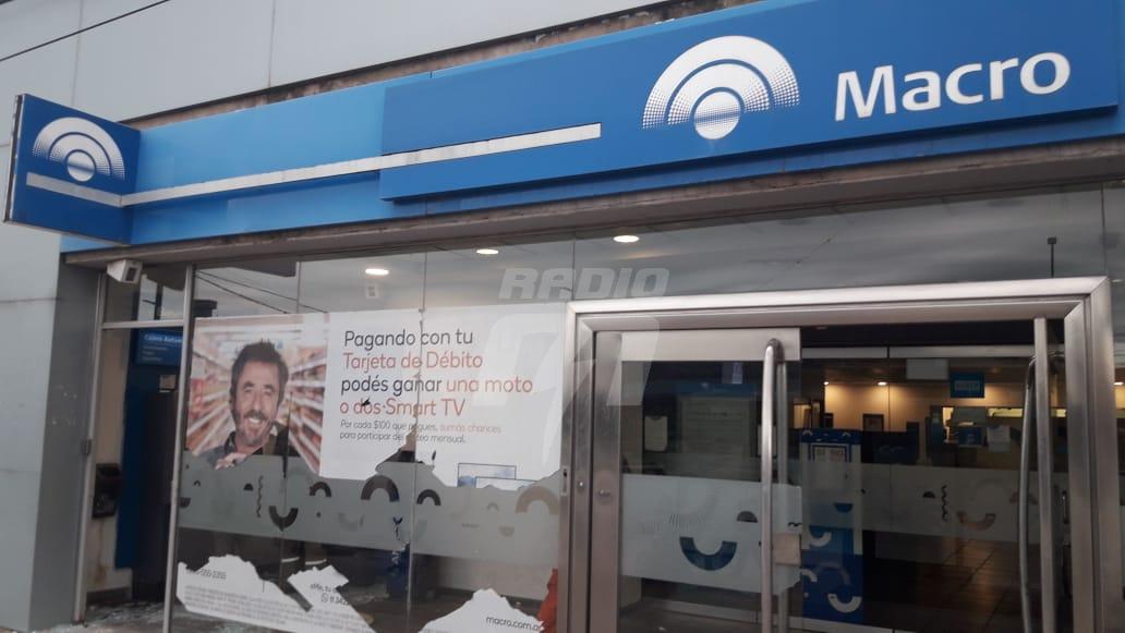 Vándalos rompieron la puerta blindex de los cajeros automáticos ubicados en la sucursal del Banco Macro de Blas Parera al 6800.