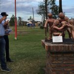 La escultura fue elaborada en concreto, con hierro y cemento, y modelada por el artista, que la hizo “a contrarreloj, en prácticamente una semana. Me encontraba de vacaciones cuando me consultaron qué se podía hacer, sugerí esta idea, estuvieron de acuerdo e inmediatamente pusimos manos a la obra”, recordó.