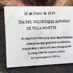 En reconocimiento a esa labor fue que desde la Comuna se declaró por ordenanza al 15 de enero Día del Voluntario Anónimo y al cumplirse un año de esa fecha se decidió inaugurar este monumento “para que la gente no se olvide y para que quede inmortalizado ese día donde se pudo ver el corazón de Villa Minetti”, agregó el presidente comunal.