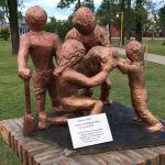 “En reconocimiento a la labor desinteresada a personas que aportaron su esfuerzo, maquinarias y vehículos para salvaguardar la integridad de nuestro pueblo en la emergencia hídrica”, resume la placa que acompaña a la escultura que recrea la escena de una familia con una pala y una bolsa de arena, y que ya lucen en plaza San Martín de la localidad.