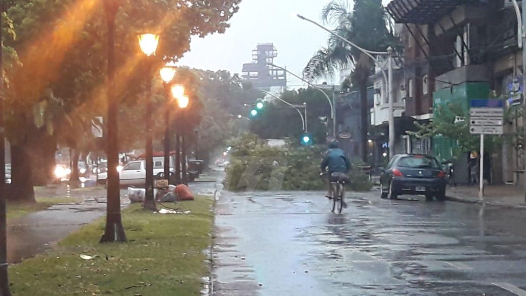Bulevar Pellegrini y San Jerónimo se cayó un árbol producto de los fuertes vientos. El mismo fue removido por obreros de Uocra que trabajan en la construcción de un edificio en la zona.