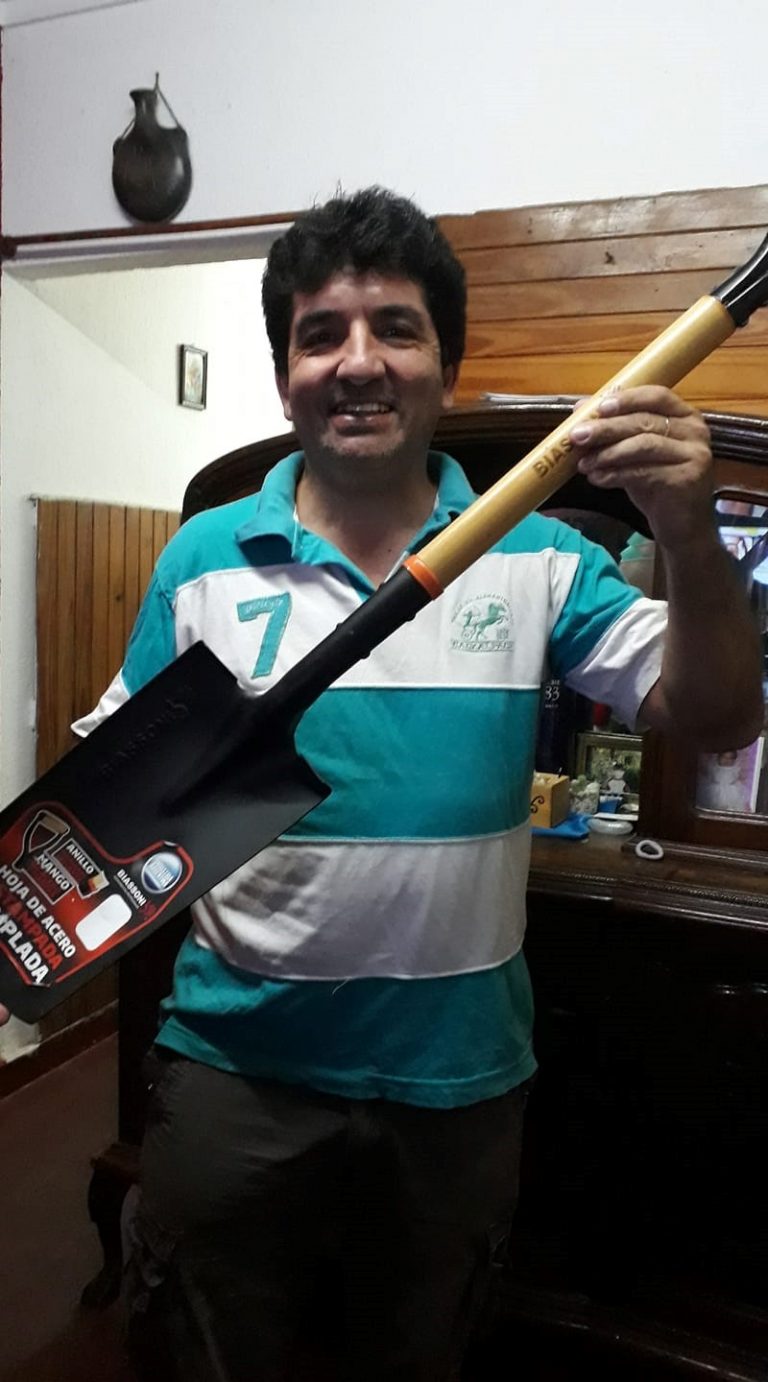 Luis llamó a la fábrica de herramientas y avisó que al regreso los devolvía. Así lo hizo amablemente horas más tarde y como agradecimiento la familia Biassoni le regaló una pala de punta, de las que se fabrican en la empresa.