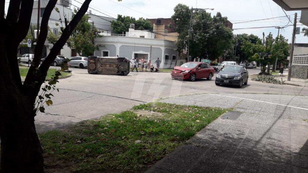 Por causas que se intentan determinar, dos vehículos colisionaron fuertemente en la intersección de las calles San Jerónimo y Córdoba. Uno de los rodados volcó y quedó en posición «lateral» sobre la calzada.
