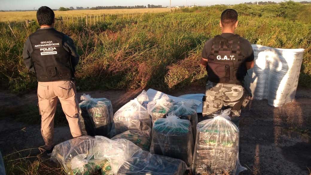 Según se dio a conocer desde la Unidad Regional XII de Policía, siendo cerca de las seis de la mañana de este viernes personal del Grupo de Apoyo Táctico se encontraba realizando patrullajes e prevención en ruta nacional 98 en sentido oeste-este y a aproximadamente seis kilómetros de ruta nacional 95 divisaron al costado del ingreso a un establecimiento rural varios bultos semi tapados por un aislante térmico color plateado.