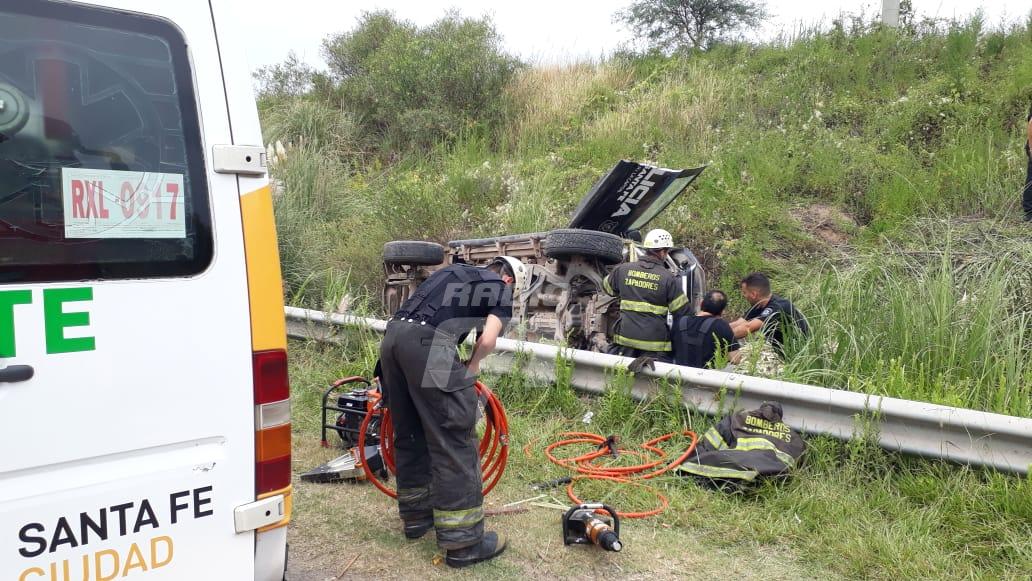 Una camioneta de la Policía volcó sobre circunvalación, a la altura de calle Gorostiaga. En dicho vehículo, se trasladaban varios dos agentes policiales y un recluso.