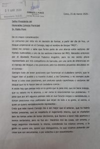 El Concejal Miguel Ángel Rafael presentó una nota al Concejo donde comunica que formará un Bloque unipersonal del PRO.