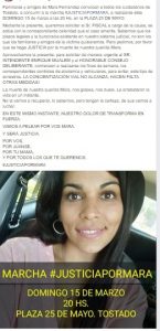 Bajo el lema “Justicia por Mara”, familiares y amigos de Mara Fernández, la joven de Tostado fallecida en un siniestro vial ocurrido el pasado domingo a la madrugada en la ciudad, realizan una marcha este domingo 15 de marzo a la hora 20 en Plaza 25 de Mayo.