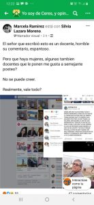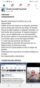Habría grupos de personas que elevaron capturas del posteo al INADI denunciado la falta de respeto. También pudimos hablar con Maestros que se vieron molestos porque en las publicaciones lo identifican como “Docente” pero esta persona ya no pertenece al sistema dicen.