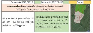 En el sector centro norte de los departamentos del 9 de Julio y General Obligado, con el avance de la recolección fueron mejorando los rendimientos, revirtiendo los bajos a magros resultados obtenidos en un comienzo de la campaña, dado que en dichas zonas las condiciones climáticas impactaron fuertemente en el desarrollo de los distintos lotes.