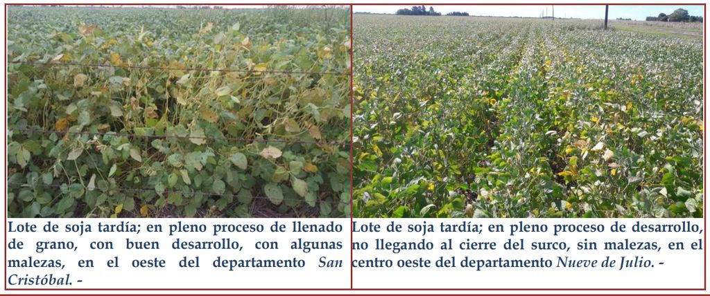Según el reporte, el cultivo muestra desarrollo foliar limitado, estructura de plantas medias a bajas, surcos no cerrados, lotes manchonados, poco uniformes y mortandad de plantas, no cambiaron y con ello la amplitud de los estados perduró. “Continuaron las aplicaciones de herbicidas e insecticidas, en muy bajo porcentaje y en lotes que justifican una acción de control”, agrega.