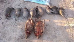 Allí constataron que en el interior de una bolsa de arpillera trasladaba dos peludos y ocho mulitas, sin vida, especies que fueron desnaturalizadas.